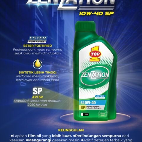 TOP 1 ZENZATION Synthetic Motor Oil dengan ESTER FORTIFIED memastikan performa terbaik oli pada mesin kendaraan. Polaritas yang lebih baik memperkuat lapisan film oli untuk perlindungan maksimal terhadap keausan mesin, pembentukkan kotoran dan oksidasi sejak mesin pertama di hidupkan.