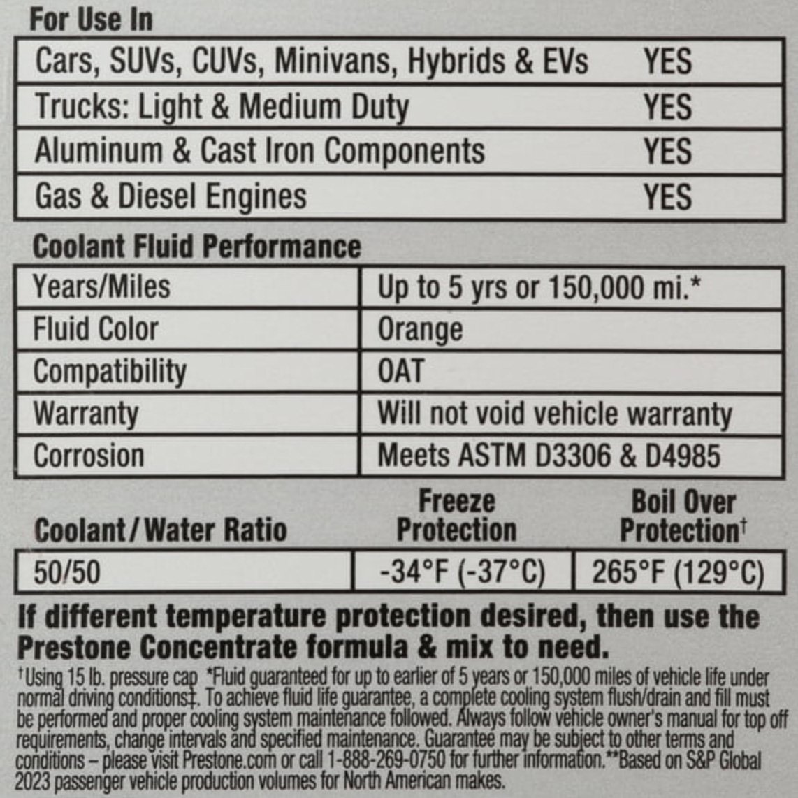 Prestone Dex-Cool 50/50 Prediluted Extended Life Antifreeze/Coolant dengan formula siap pakai yang tepat, serta kandungan DEX-COOL dari pabrikan General Motor, direkomendasikan untuk semua kendaraan yang membutuhkan cairan pendingin dengan kandungan DEX-COOL, mobil truk beban ringan maupun berat.