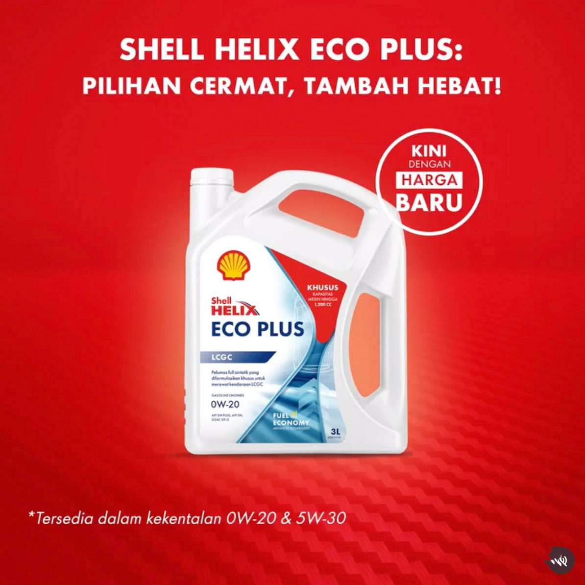 Shell Helix ECO Plus 0W-20 adalah pelumas mesin mobil teknologi sintetis khusus Low Cost Green Car (LCGC) atau mesin kapasitas 1.200cc ke bawah yang dilengkapi formulasi unggul ciptaan Shell untuk menjaga mesin tetap bersih dan bekerja lebih efisien.