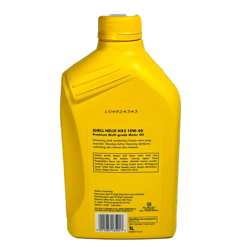 – Produk Shell Helix HX5 15W-40 yang kami jual 100% asli dan resmi.