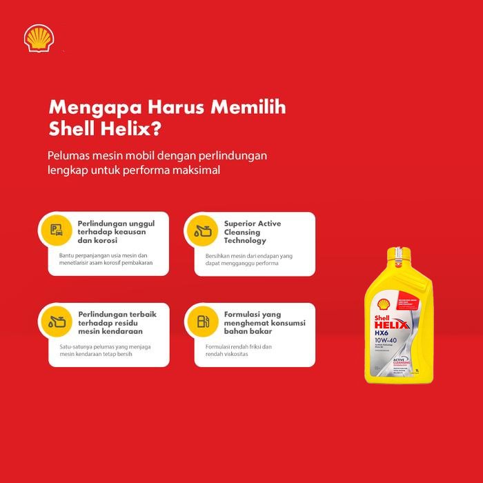 Gunakan Shell Helix HX6 untuk memastikan mesin Anda selalu dalam kondisi prima.